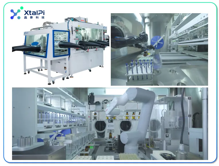 晶泰科技將自動化技術與手套箱有機結合,研發的機器人工作站系列——XmartChem??智能合成工作站(手套箱工站),自動完成合成實驗中投料、反應、產物稀釋、過濾全過程,實現無水無氧操作體系下化學合成實驗操作流程自動化,專門為化學人員研發的軟件系統 ,直觀易用。突破高通量合成篩選的瓶頸,降低操作門檻,提高實驗的效率和安全性,增加科學研究產出。