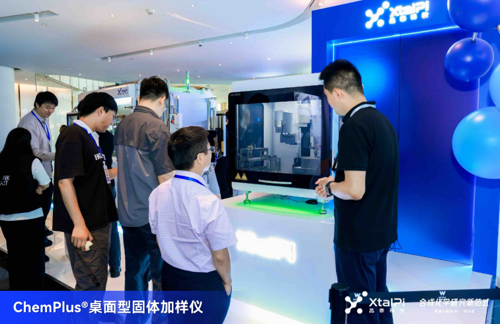 大會現場,晶泰科技自研的智能自主實驗平臺引起與會嘉賓關注,數臺應用于不同實驗工程的機器人合成工作站零距離呈現了 “機器人融合 AI ” 在多個研發場景應用的最新成果。該平臺以領域專有 AI 模型為核心,擔當 “大腦” 之責,專職實驗流程設計、反應預測等前期部署和過程推進;以自動化技術驅動機器人工作站為 “雙手”,實現高精度、高通量、更安全的化學操作。在此過程中,通過機器人收集的數據反哺 AI 模型,形成預測更準、設計更優的良性循環。這一新范式通過數據驅動的智能決策與高通量自動化操作,顯著提升化學空間探索效率,助力新物質快速發現。