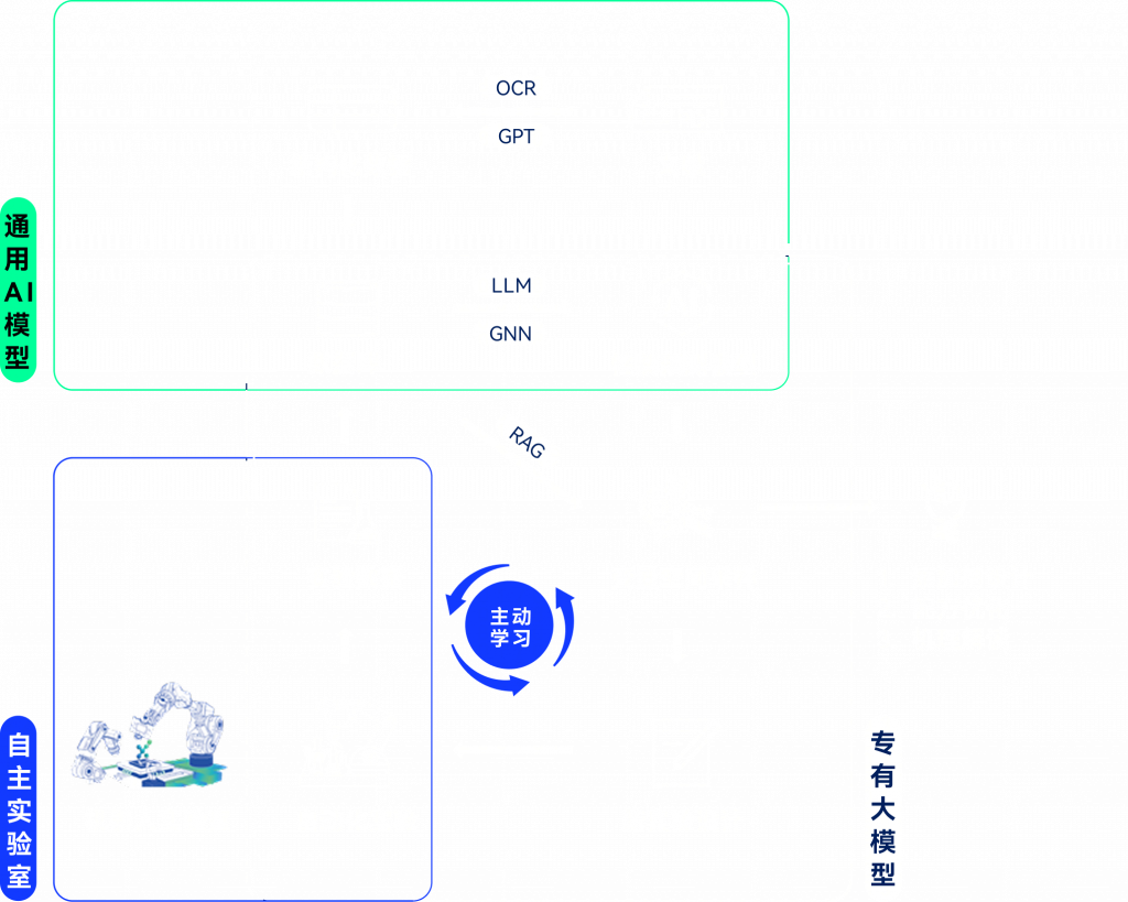 通用人工智能模塊:實現文獻和專利等公開數據的采集和知識庫的構建,為項目開展提供原料庫和初始配方;