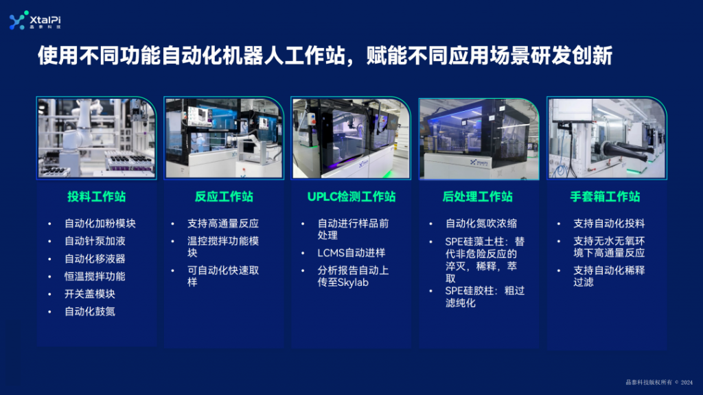 晶泰科技可提供包含自動化設備采購與特定應用自動化機器人定制開發、數字化與智能化軟件系統以及實驗室升級改造的一站式服務。