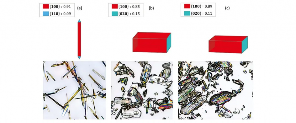 晶習調控的本質在于對不同晶面間相對生長速率的控制。除了晶體結構本身以外,晶面生長速率還受到多種實驗條件的影響,包括結晶過程中使用的溶劑種類、溫度、過飽和度、攪拌速度等,這也是晶習優化過程中考慮的主要變量。
