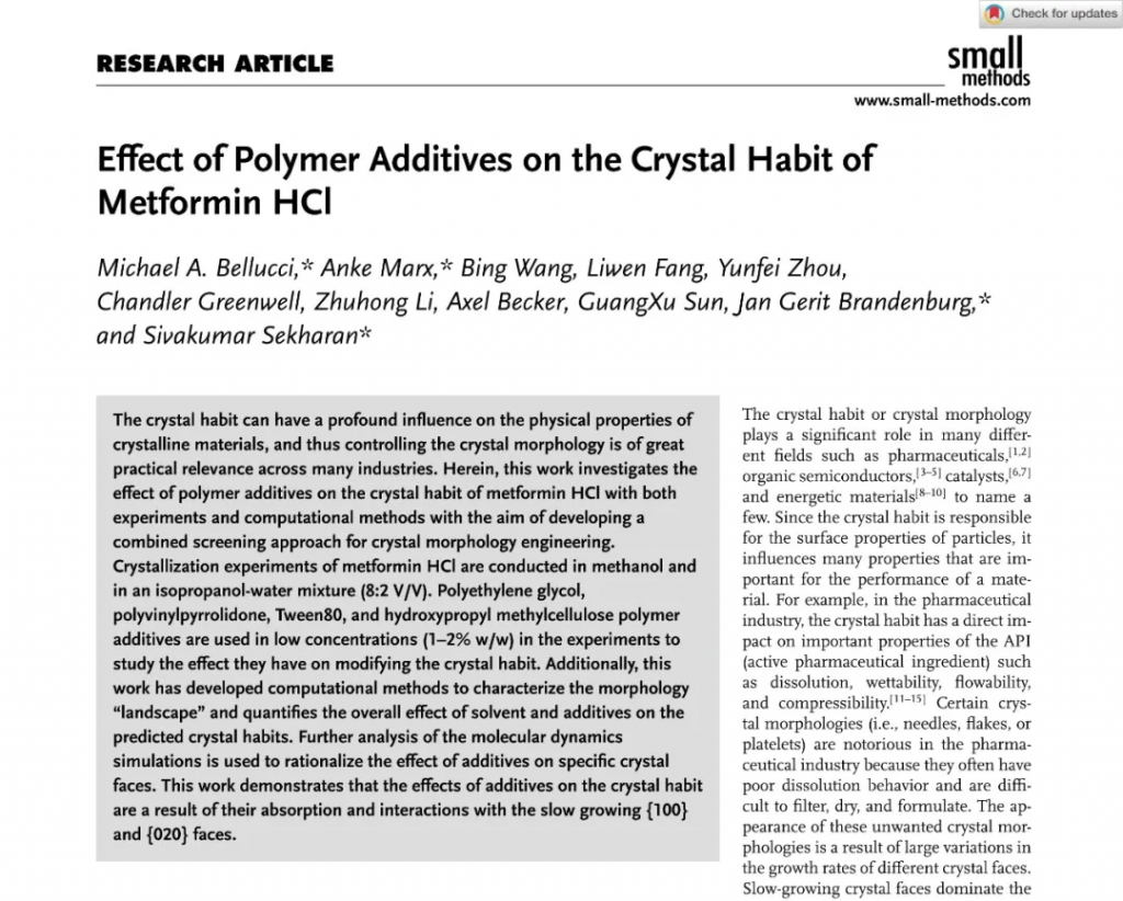 晶泰科技晶習預測平臺助力默克鹽酸二甲雙胍晶習調控